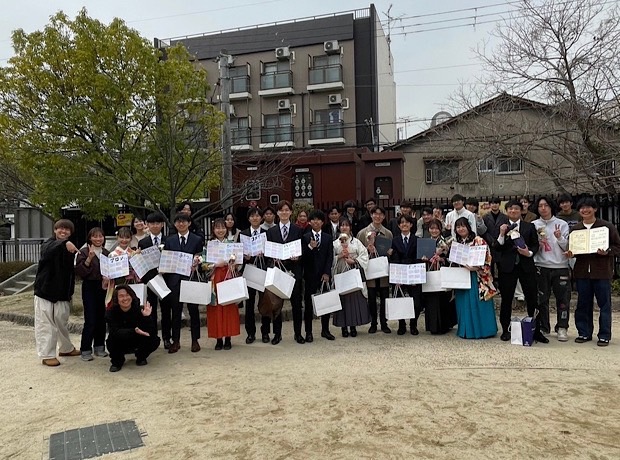 男子はスーツ、女子は1回生が制服、2回生がサンタさん、